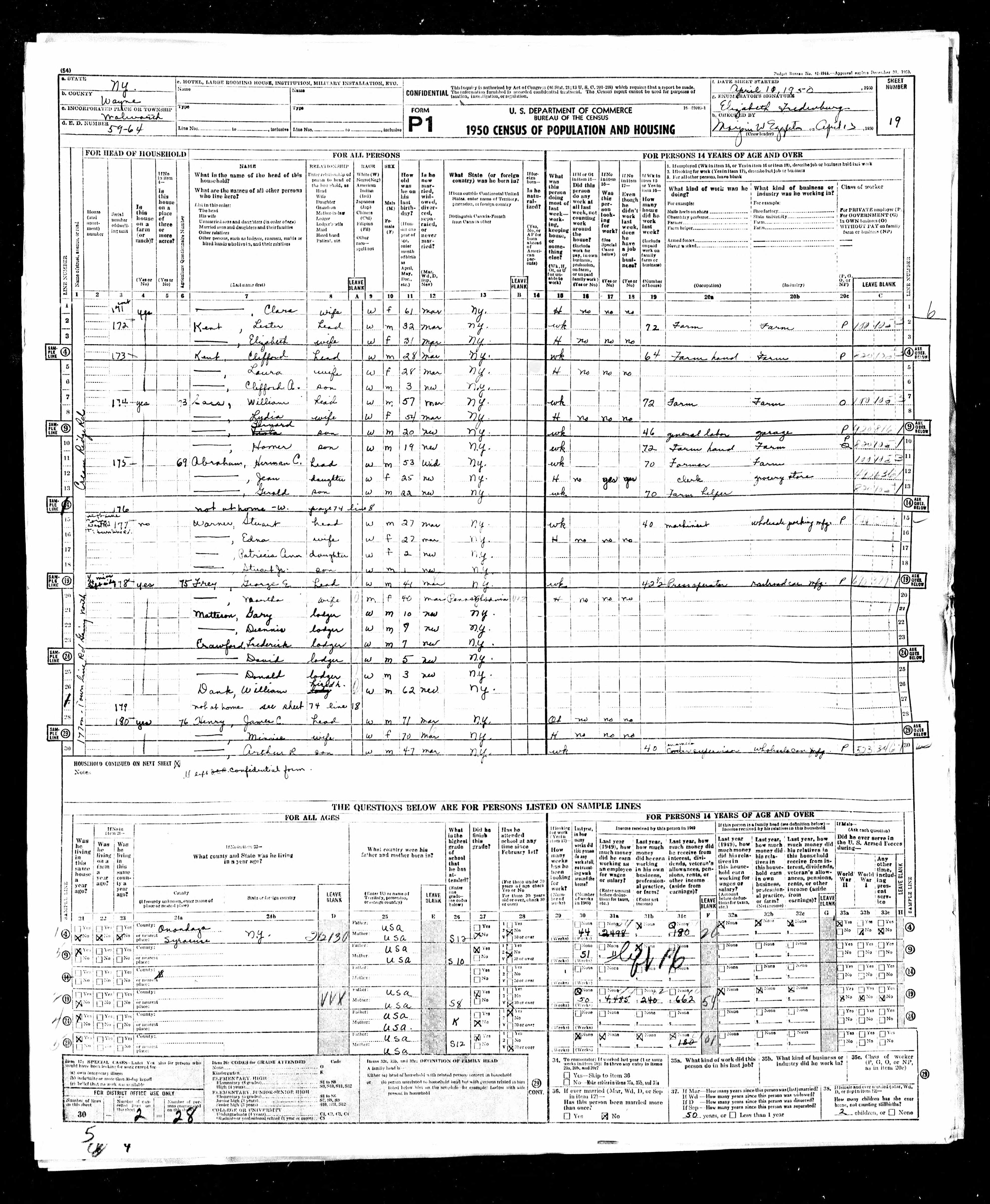 Kent, Clifford A; Roll: 5727; Page: 19